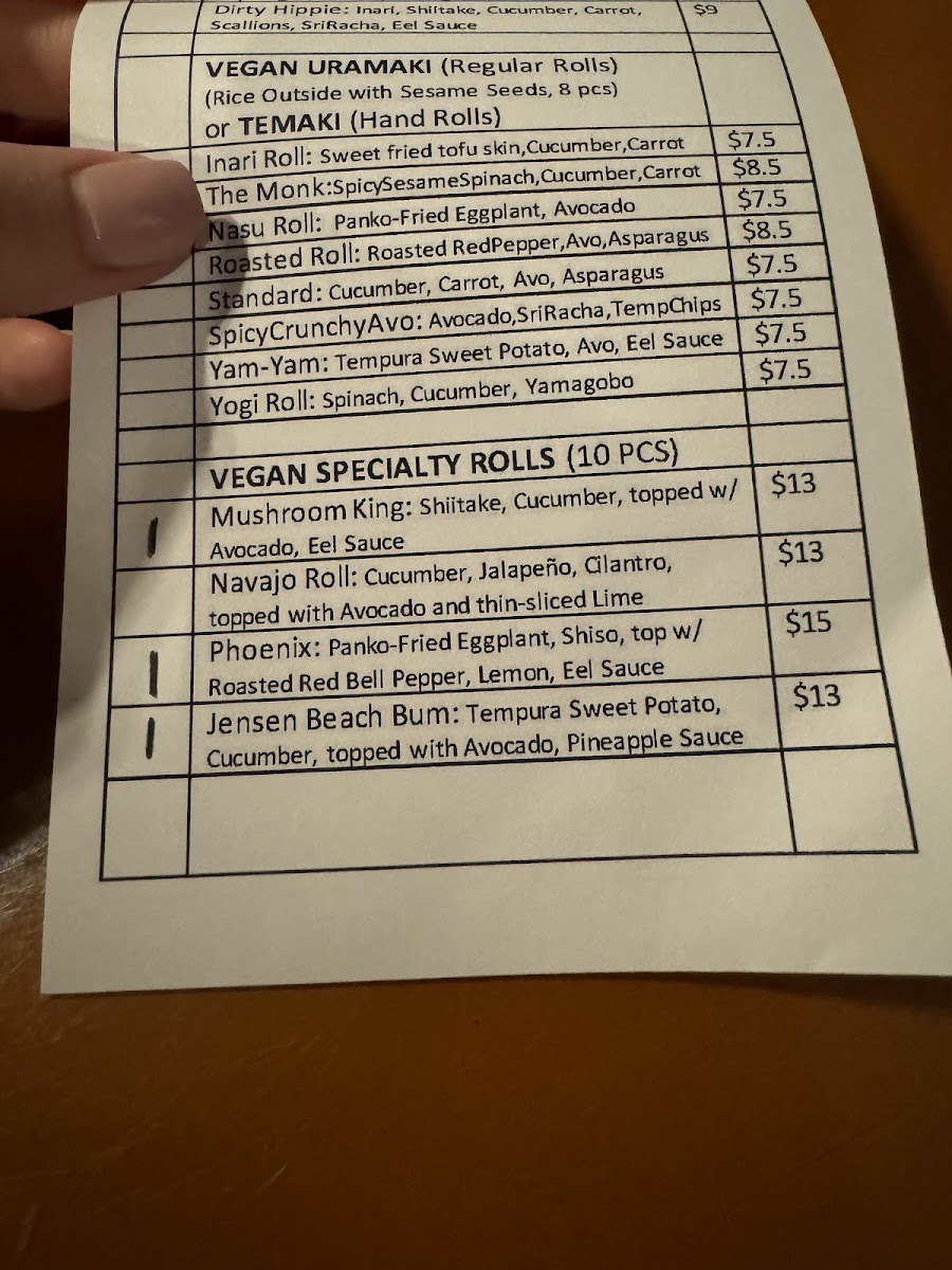 Shiitake mushrooms, cucumber, topped with avocado, vegan eel sauce